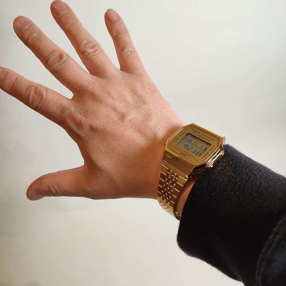 こちらはゴールドカラー、やはりVINTAGE時計にも見える佇まいが素敵ですね。