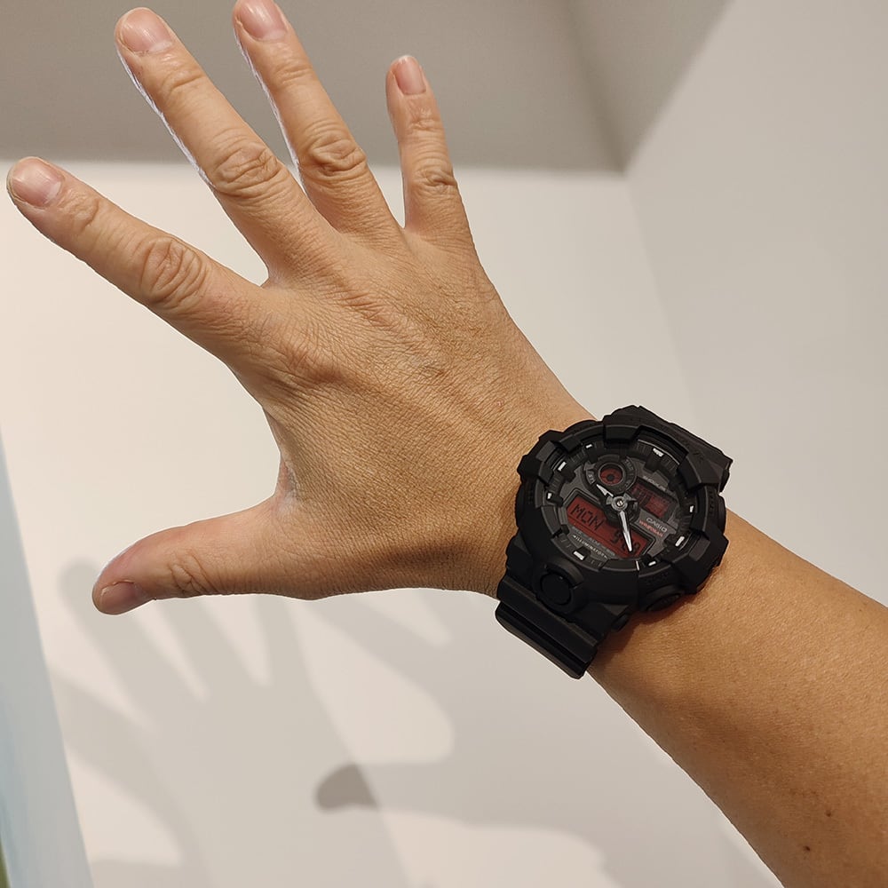 ブラックとレッドにこだわったBBRシリーズ、人気のGA700ベースは3Dデザインというだけの事はある。シンプルなG-SHOCKの風防ではありますが主張もあり、格好いい1本です