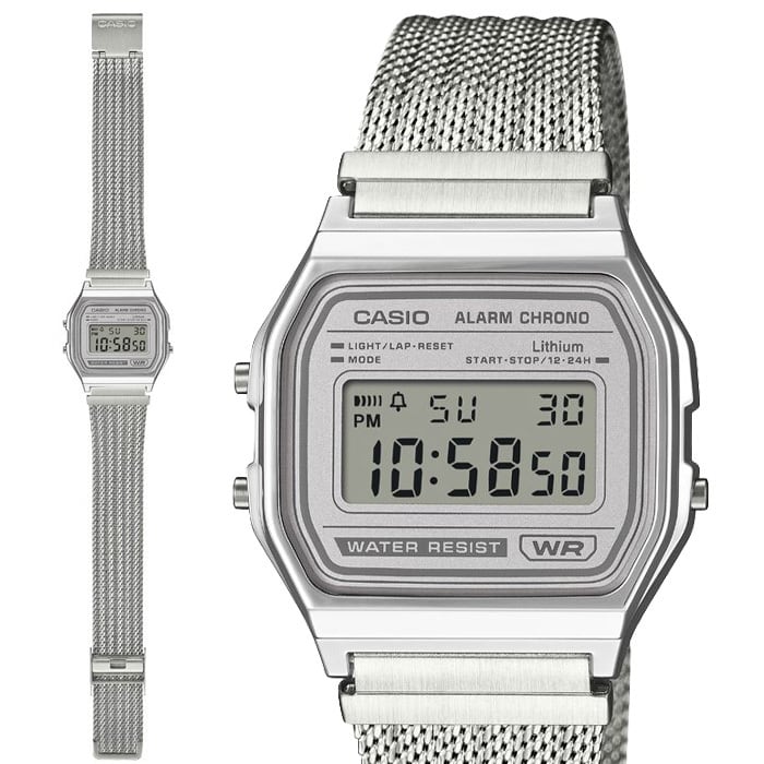 使い勝手の良さで根強い人気を誇るデジタルウオッチA158を、メッシュバンド仕様に仕立てたスタイリッシュなウオッチです。